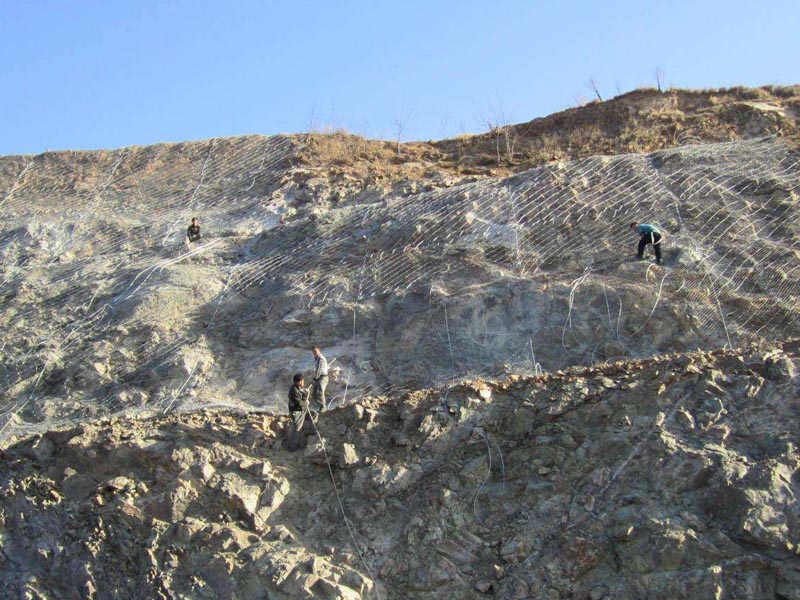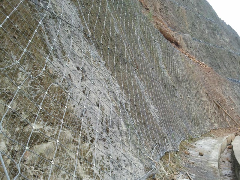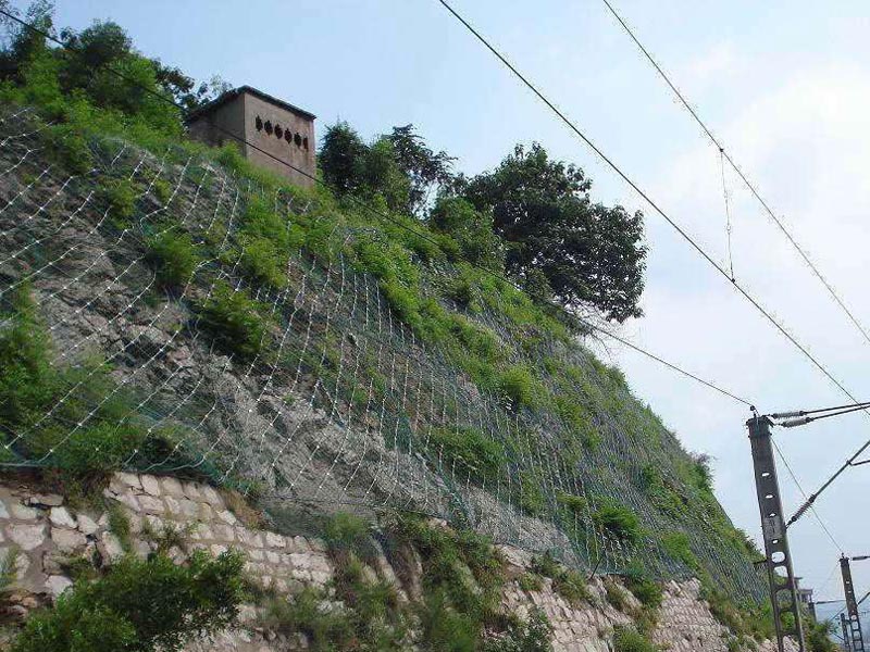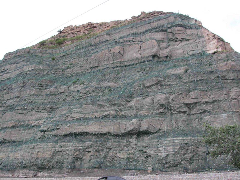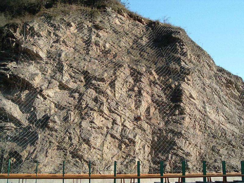 SNS主動邊坡防護網(wǎng)系統(tǒng)由柔性菱形鋼絲繩網(wǎng)+鋼絲繩錨桿+支撐繩+縫合繩等配件構(gòu)成整個系統(tǒng),以覆蓋、緊固坡面的方式來防治坡面巖石崩塌、滾落、飛石等危害。技術(shù)已經(jīng)相當(dāng)成熟,近年來在國內(nèi)得到了極為廣泛的應(yīng)用。